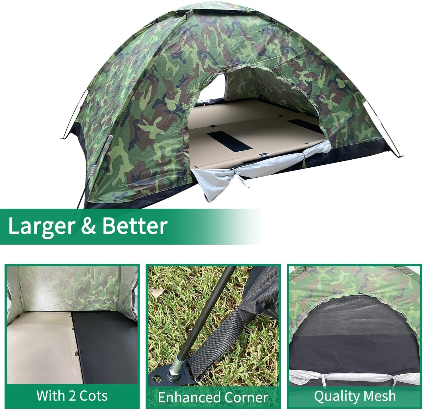 - [Portability]: Single tent weighs approx. 2.6lbs, Double tent weighs ~3.5lbs. Easy to install and carry. Can fit into your backpack. Perfect for backpacking, camping, bicycle & motorcycle touring, musical festivals, beaches, mountain climbing and other outdoor activities.